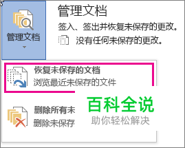 单击“文件”>“信息”>“管理文档”>“恢复未保存的文档”(Word 中)。