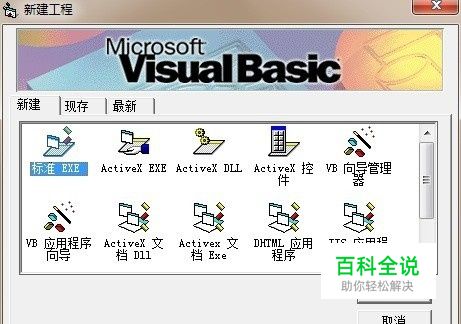 首先第一步我们要安装VB的开发环境。 这里推荐小伙伴安装VB6.0精简版,或者是企业版。 安装完成之后, 打开,会弹出对话框,新建工程,我们选择标准EXE,如图