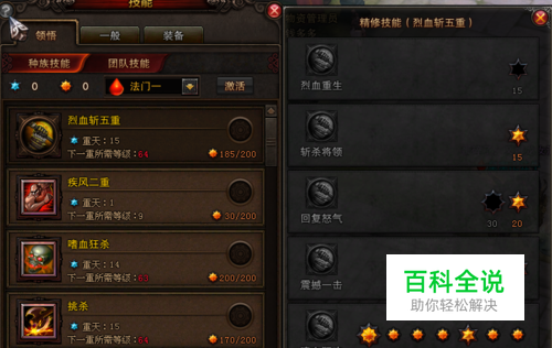 烈血五重斩(15重天):点斩杀将领,回复怒气,震撼一击,满上嗜血狂攻,和一点绝地反击,有些人会问我干嘛不点烈血重生呢,开了嗜血狂杀一直吸血,所以不点烈血重生也不会死。