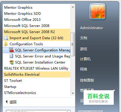 开始 》 Microsoft SQL Server 2008 R2 》SQL Server Configuration Manager
