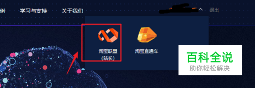 登录成功后点击自己用户名的向下箭头,选择淘宝联盟(站长)。