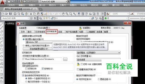 选中选项后打开,弹出选项对话框,点中打印和发布选项卡,选择打印样式表设置按钮