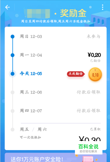 在奖励金翻倍界面,单击“翻倍”即可翻倍,界面下方还有免费领取“账户安全险”,单击打开即可领取。