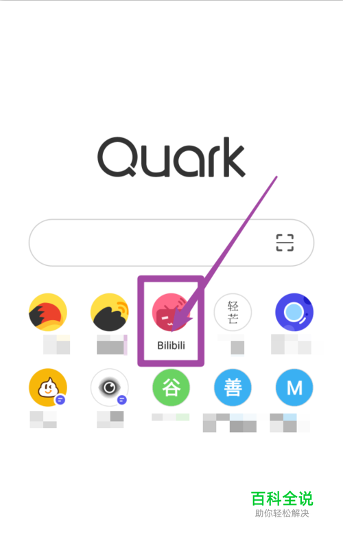 首先打开夸克浏览器,进入一个视频网站(这里直接进入b站)