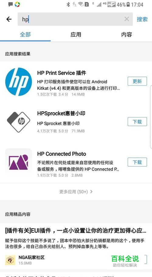 然后就是,在手机APP市场搜索HP无线打印的插件,下载hp print service插件件。