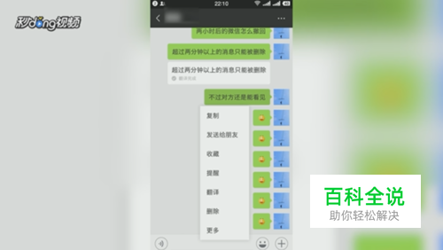 超过两分钟以上的消息只能被删除,但是删除之后对方还可以看到该条消息内容。