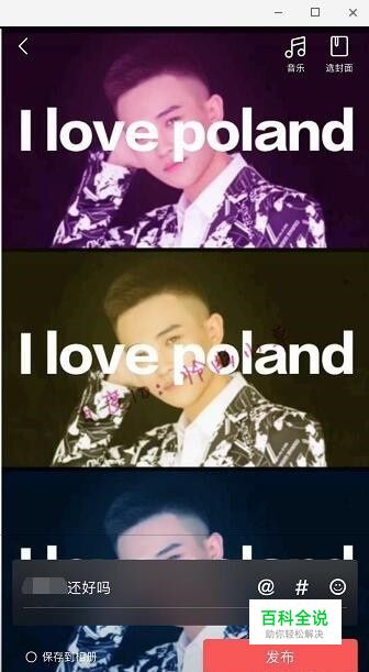 输入想说的话,还可以@一下好友,添加话题、表情等,右上角可以选择音乐、封面,然后点击“发布”。