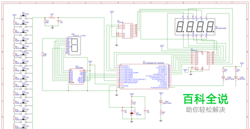 参考数据手册STC15.pdf的低405页4.23 A/D做键盘扫描应用线路图。对应所选择的单片机,安排IO连接如下图所示。 其中,74HC595驱动一位数码管显示当前按下的设定值,数码管显示出当前按键的AD转换值。如此安排便于排除故障并且可以由此设定按键判断的AD转换值范围(不懂没关系,继续看)。