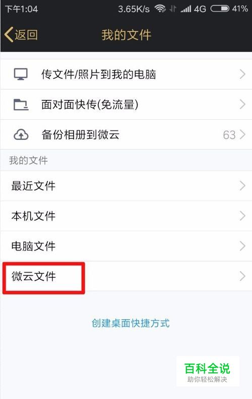 点击我的文件打开的界面下面有一个微云文件那一项。
