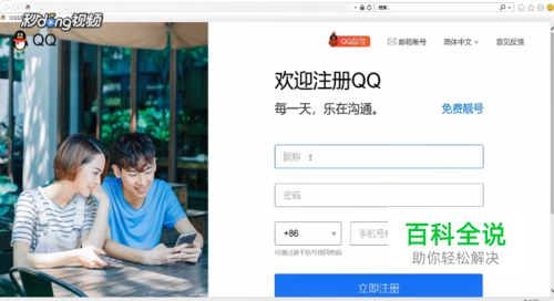 在出现的界面中输入相应的QQ昵称,密码,手机号码。