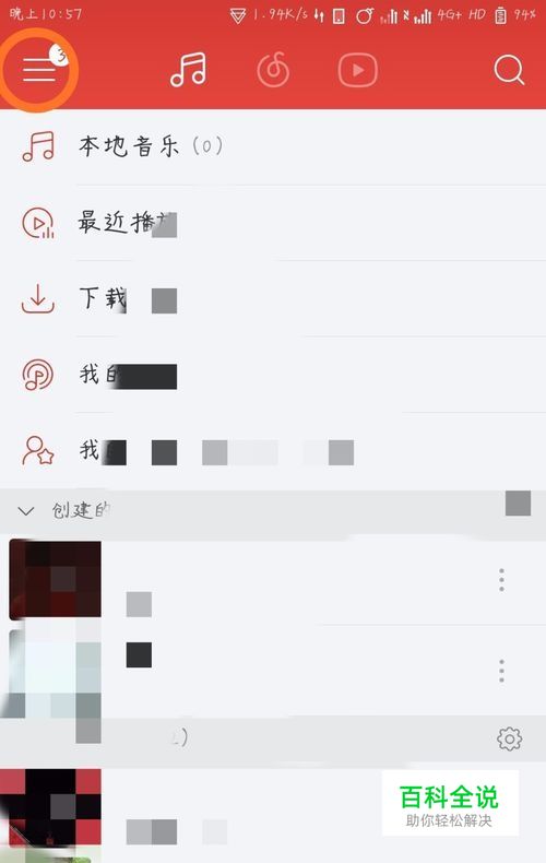 进入某易云音乐主界面,点击左上角的菜单栏符号。(如图所示)