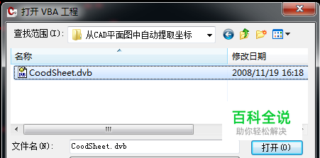弹出打开VBA工程对话框,选择提取坐标宏文件。