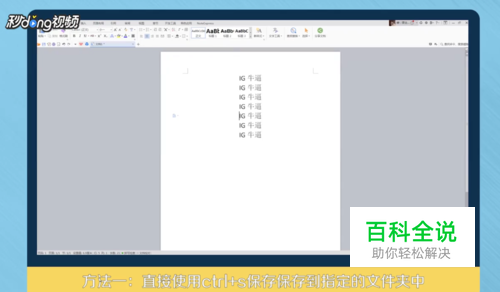 方法一:直接使用“Ctrl”+“S”保存,保存到指定的文件夹中。当文档的右上方的星形标记“”消失,就说明文档已经保存了。
