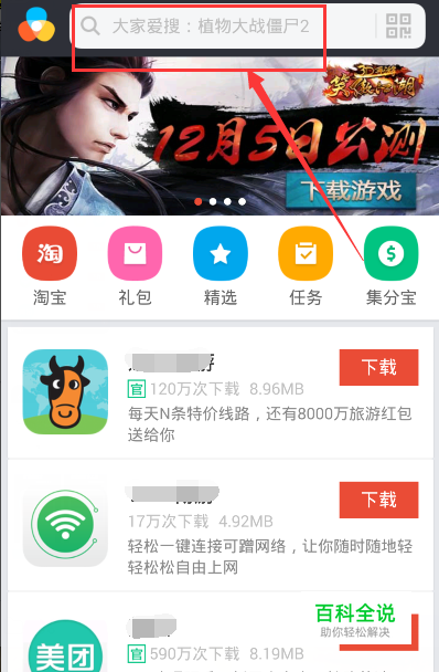 首先打开手机上下载软件管家,就是综合下载中心的哪种软件。 在搜索框中输入较为流行的一款软件。