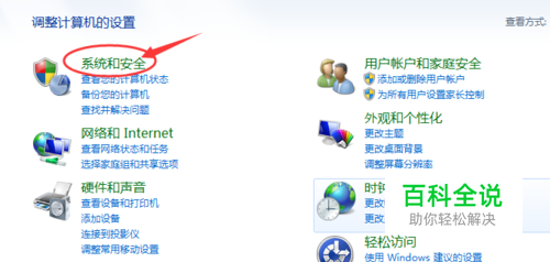 然后在如下的控制面板页面中选择“ 系统和安全”。