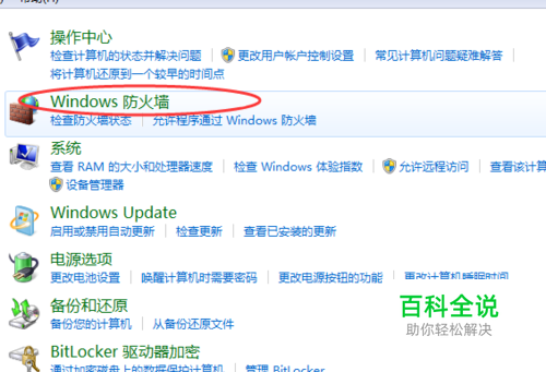 如下图所示,选择“ Windows 防火墙”。