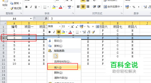 再选中行,右击,点击插入。
