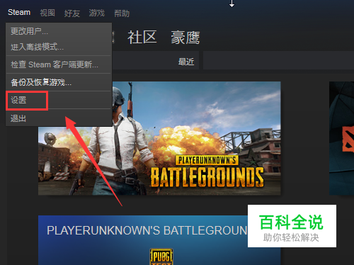 打开steam游戏平台,点击左上角的设置,如图所示