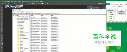 在左侧找到“HKHKEY_LOCAL_MACHINE”,选择“SOFTWARE”,找到“Microsoft”,点击“Windows”,找到“CurrentVersion”点击“Policies”,选择“System”,找到“EableLUA”并双击打开。