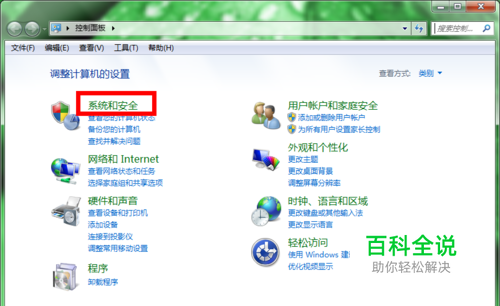 在打开的控制面板页面中,找到系统和安全选项,单击打开