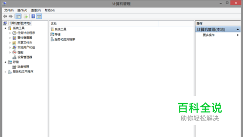 在桌面右键点击我的电脑,弹出的菜单选择管理,打开计算机管理界面,如下图:
