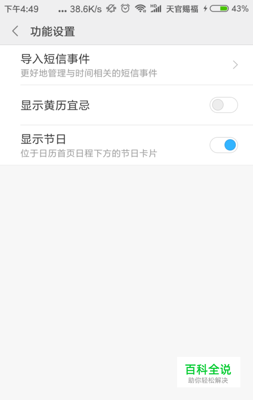 在日历这个设置界面,点击 功能设置