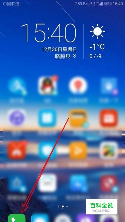 在华为手机屏幕左右的滑动屏幕,找到手机的“拨号”的图标。