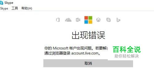 当登录skype出错时,退出skype,重启skype进入登录页面,单击左下角“登录时遇到问题了?”的链接。