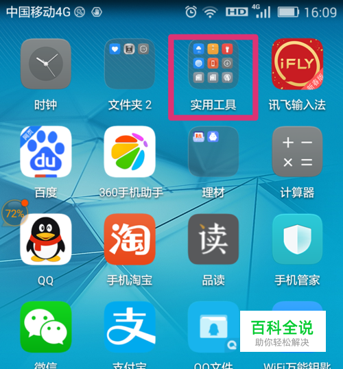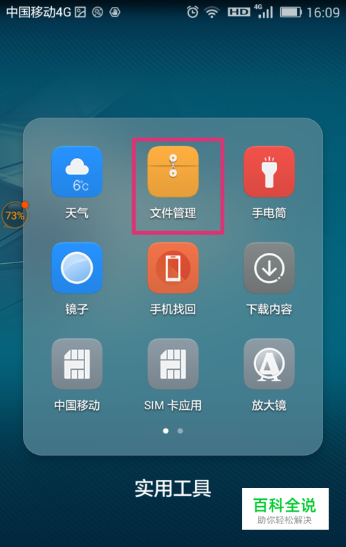 首先,点开手机自代的“实用工具”,再点“文件管理”;如图