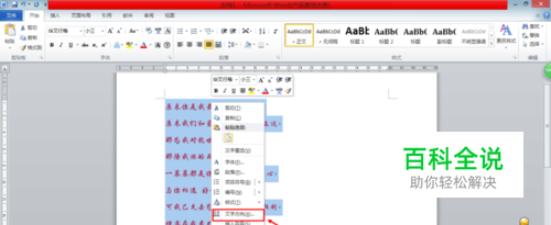 然后选中我们需要设置的文字,并点击鼠标右键,在弹出的快捷菜单中选择“文字方向”