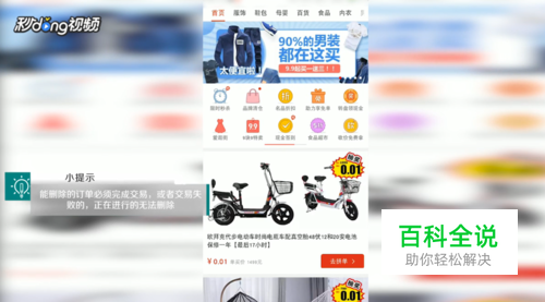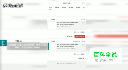 可以删除的订单页面下方有“删除订单”选项,点击选项,在弹出的对话框中点击“确定”即可。