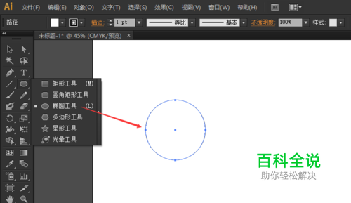 打开AI软件,新建一个空白文档。用左侧的椭圆工具画一个圆形,以做演示之用。