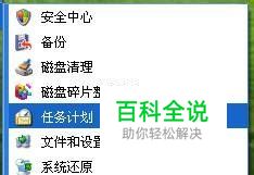 操作方法:依次点击“开始->程序->附件->系统工具->任务计划”,