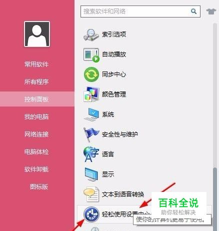 点开桌面小助手后,在控制面板中打开轻松使用设置中心