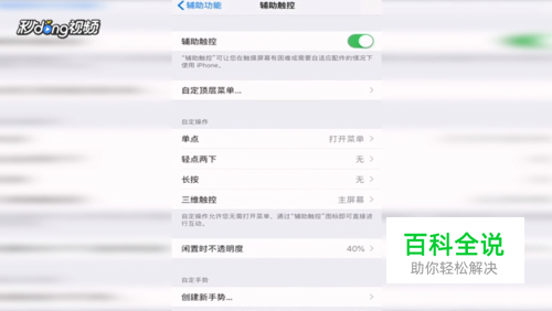 下拉页面,点击“辅助触控”,点击小圆点将“辅助触控”功能打开。