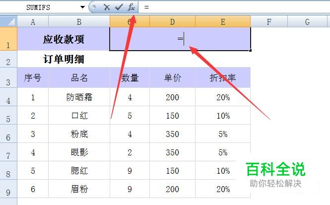 点击第三行,输入“1-”后,再选中E4:E9折扣率列,表示为:乘以1减折扣率;