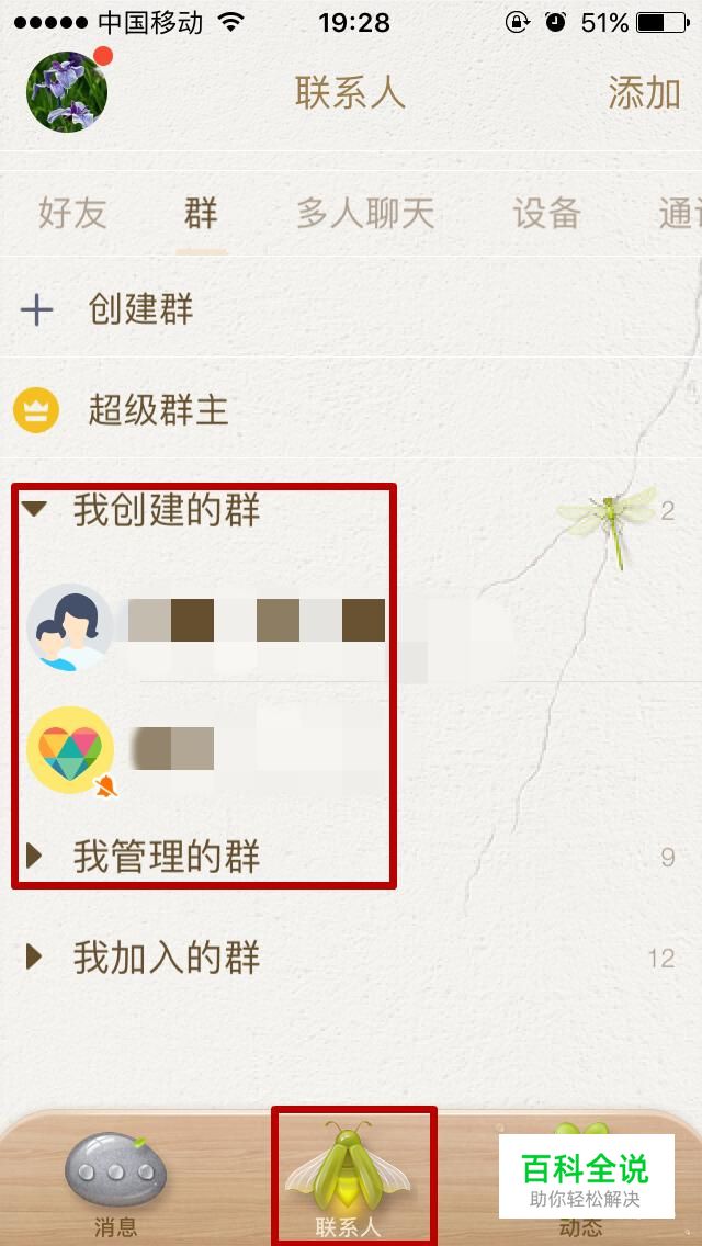 打开手机qq,点击下方的联系人,然后找到你是群主或者管理员的群;