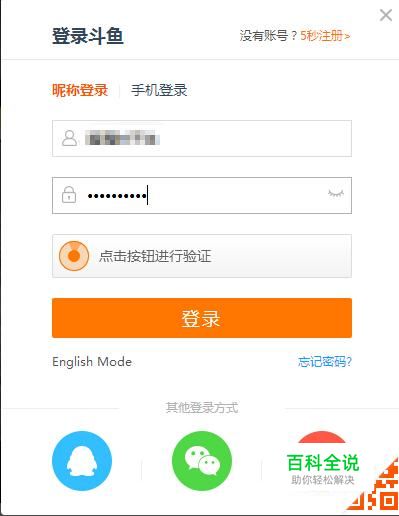 注册完成后返回斗鱼页面,点击“登录”按钮输入刚才注册的账号和密码进行登录!