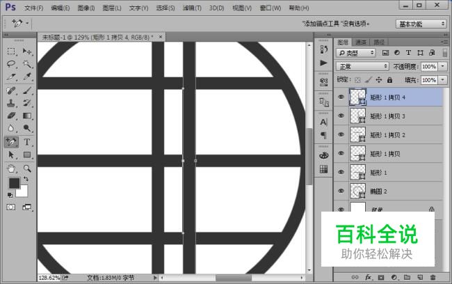 复制一层矩形1拷贝4,Ctrl+T自由变换,水平翻转,向右移动225px,这就画好了一个简笔全球互联网。