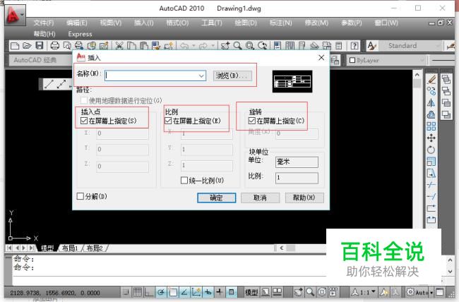 用鼠标在界面上指定一点(或者使用键盘输入插入点坐标用)。