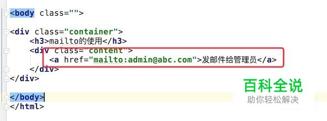 Html代码很简单,如图, 就是一个a链接,然后mailto加上管理员的邮箱。