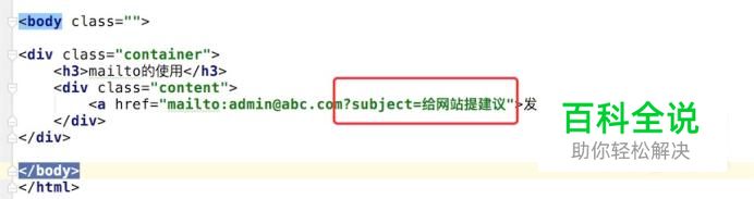 如果我们需要为用户填上邮件标题,能做到吗? 可以的,很简单,在a链接里加上subject就行了。如图,我们添加了一个标题‘给网站提建议’。