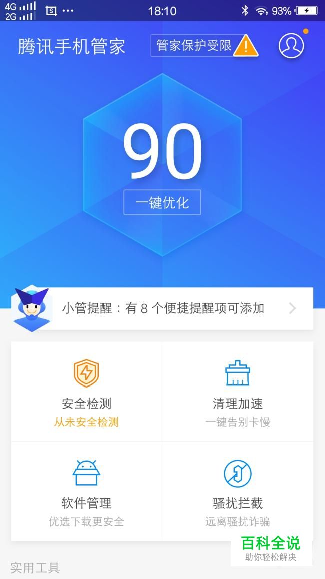 我们可以利用手机腾讯管家来对付电话轰炸。打开手机腾讯管家,在主页面找到骚扰拦截。