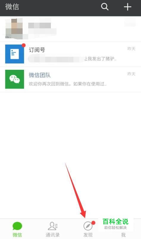 首先我们先打开微信客户端,然后会进入到如图所示面板,此时我们单击面板上的“发现”按钮。