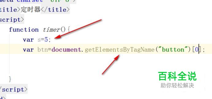 现在我要做的就是一个倒计时定时器,假设倒计时间是5秒,所以我们就需要设置一个变量来保存秒数。并且我们还要获取到button这个元素哦。