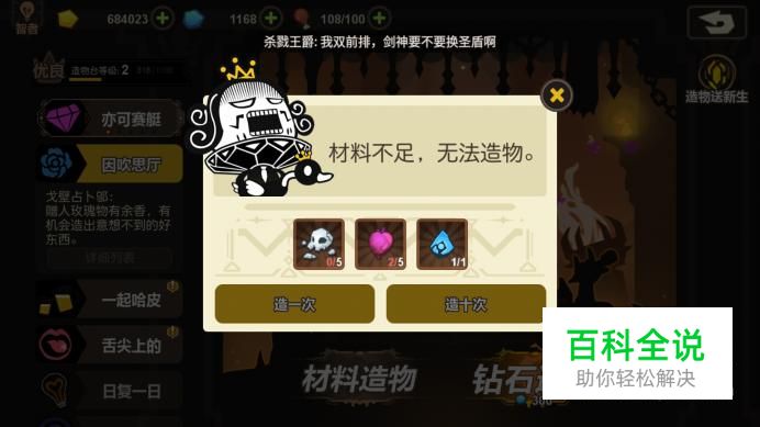 点击后即可弹框提示需要的材料,点击想要进行获得的材料图标。