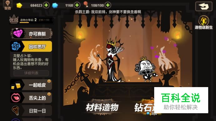 进入造物台界面,在左侧类别中选择“因吹思厅”,进入后点击“材料造物”