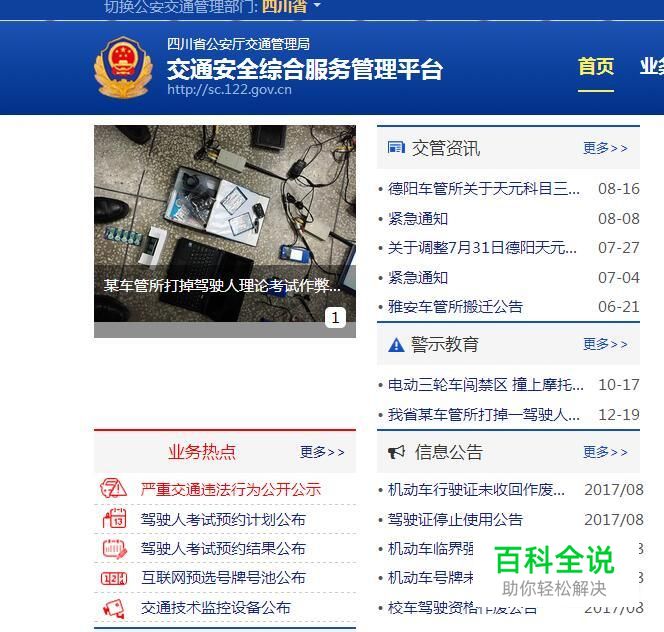 登陆所在地区的交通安全综合服务管理平台,进入到其官网。