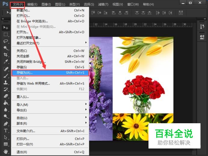 当所有的图片都摆放好了之后,点击保存,把花朵的图片保存下来。