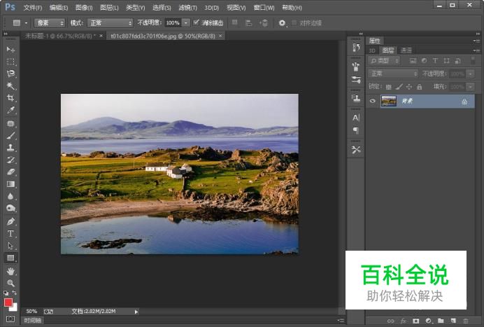 打开我们需要调整海岸线的风景图片。